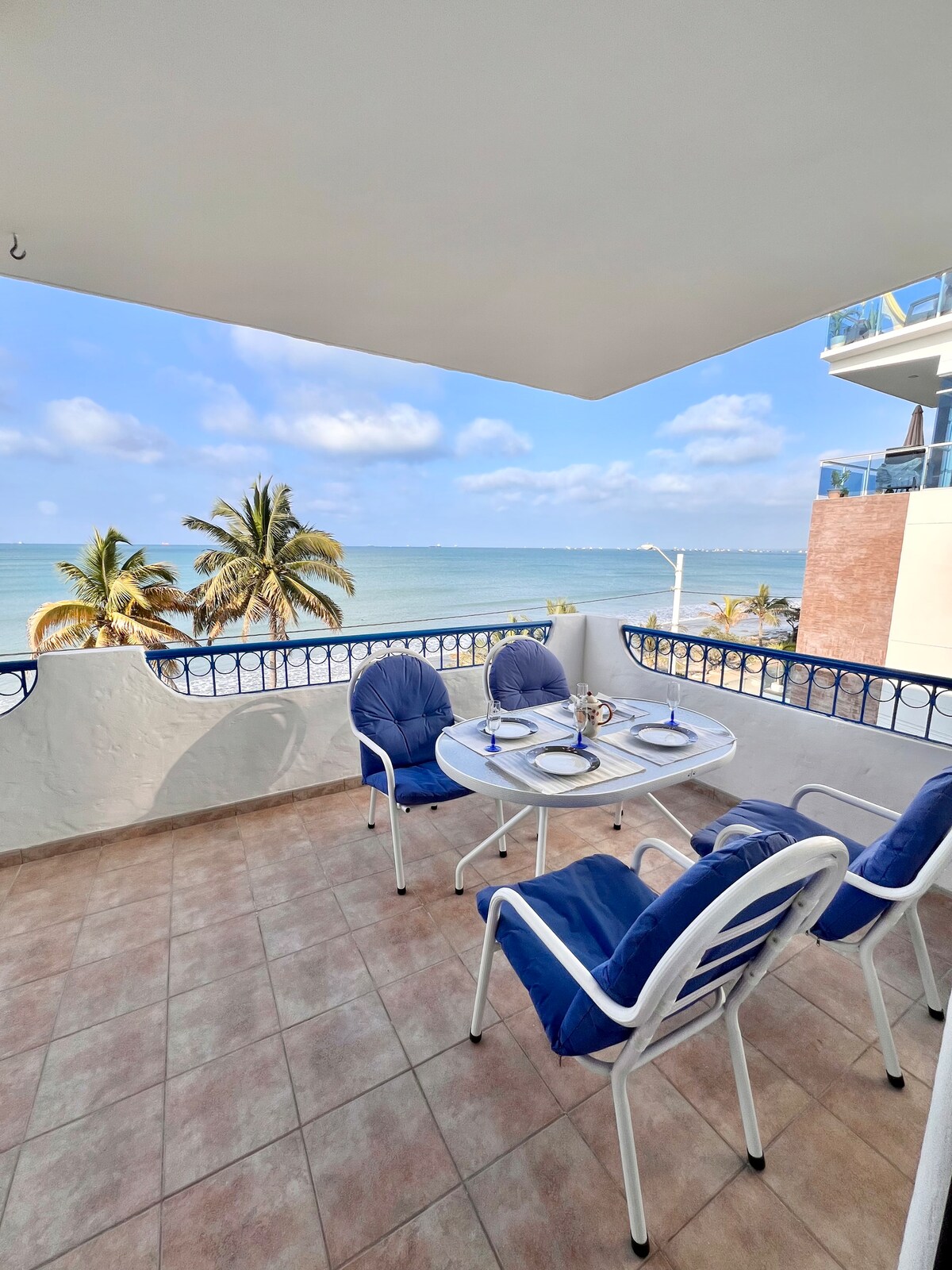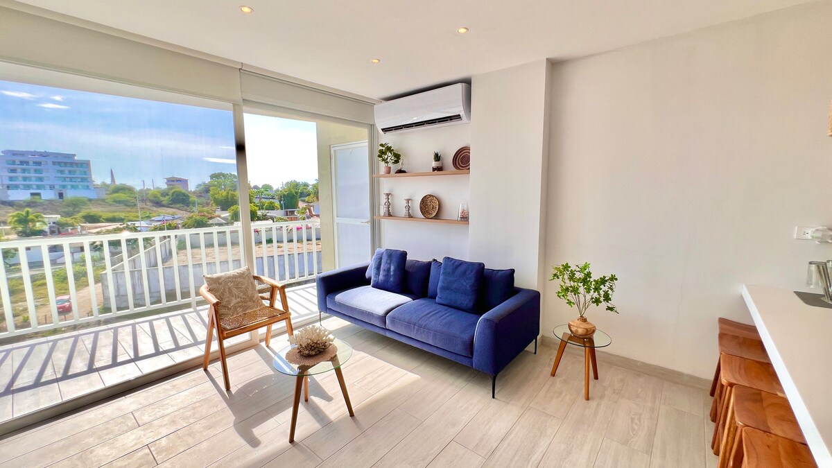 Frente al mar con seguridad 24h en la urbanización, playa y parqueo. Acorde con el sonido del mar, tome café con la brisa entrando por la ventana y sienta que el tiempo paró ♥ ⭐Incluye: • 3m caminando a playa • Parqueo y vistas 360° • WiFi 600Mb • Piscinas, jacuzzi y zona BBQ • Cuartos con A/C, agua caliente y cortinas • TV: Netflix, Spotify & Alexa • Airfryer, cafetera, micro, refri y cocina • 3 baños, cuna, Petfriendly, ascensor • Toallas, ropa de cama y papel • Guardias, y cámaras 24h