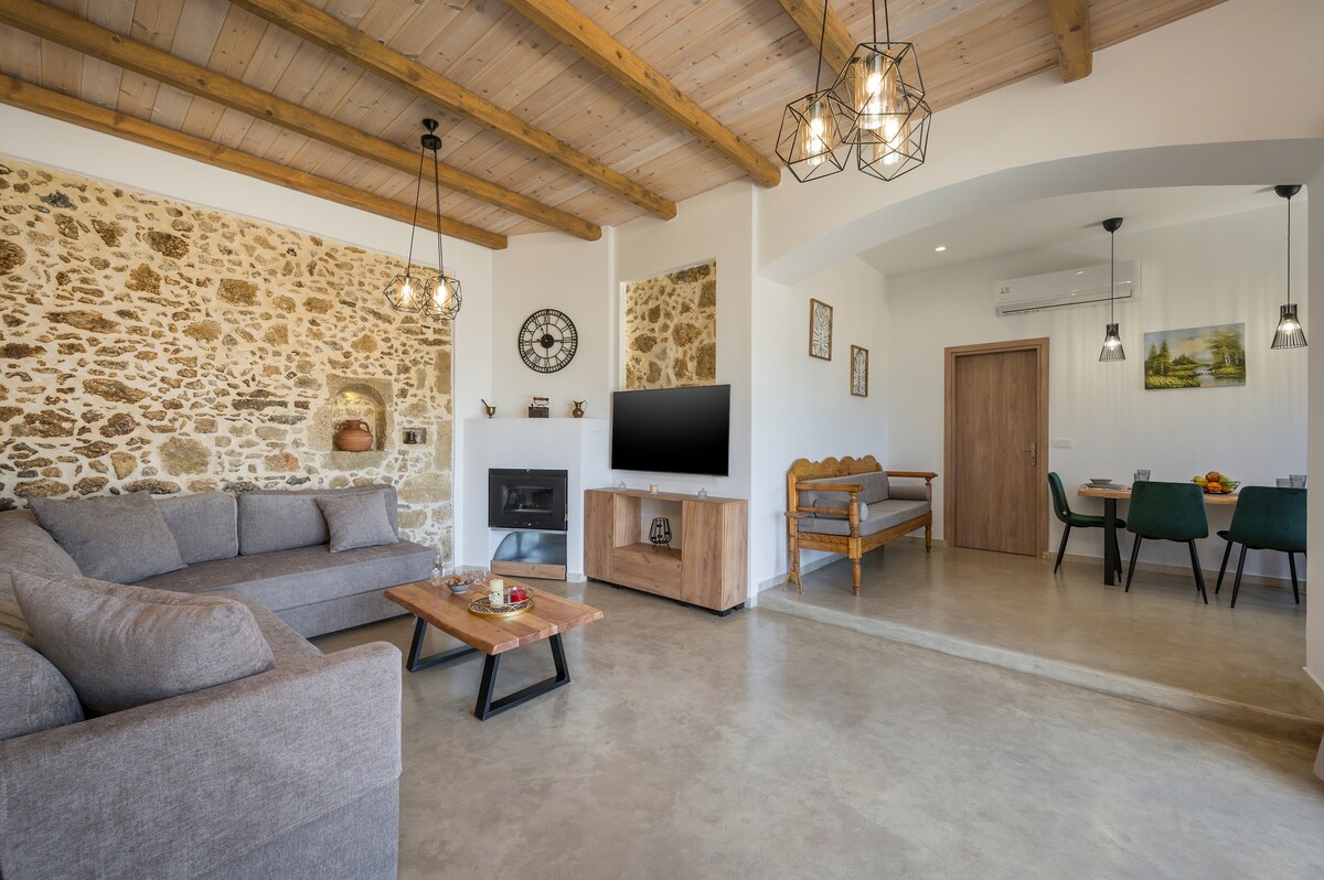 La filoxenia consiste en ser amable con un extraño, de una manera particularmente cálida y generosa. Esto es lo que ofrecemos como experiencia. Nuestra casa está hecha de piedra y madera. La luz del sol entra en todas las habitaciones desde muchas ventanas. La casa ofrece una cocina totalmente equipada y una sala de estar con chimenea. Hay dos dormitorios, cada uno con baño privado y aire acondicionado. Encontrarás todo lo que puedas necesitar. Lo mejor de la casa es su hermoso, privado y lleno de verde patio.