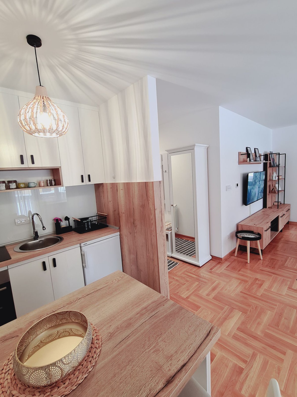 Alquilamos un apartamento en Zlatibor, en el centro sobre el mercado. El departamento está en un loft, que consta de una sala de estar con un comedor, un dormitorio, una cocina y una terraza. También se proporciona un tres plazas en la sala de estar para dormir (160 x 220). El apartamento está equipado con los electrodomésticos necesarios para una estancia agradable (secador de pelo, plancha, hervidor, cafetera, dos televisores, radiadores noruegos). Hay una cuna portátil y un comedero para bebés disponibles para los huéspedes más pequeños. ¡Bienvenido!