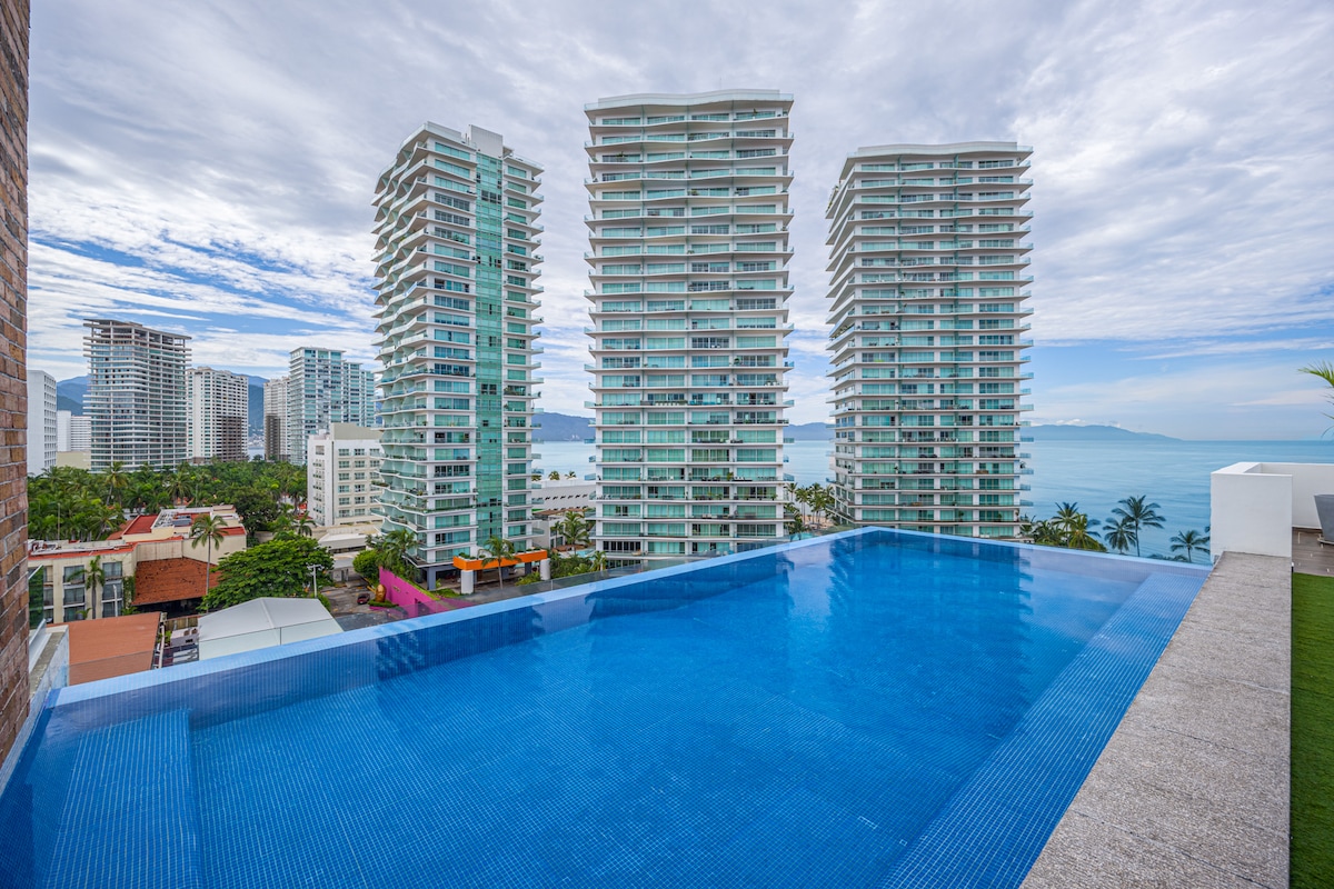 Bienvenido a tu MODERNO apartamento en el séptimo piso. Tu piscina infinita en la azotea con una VISTA IMPRESIONANTE del mar y los cruceros: ¡simplemente impresionante! Nuestro espacio ofrece todas las comodidades. ¿Barbacoa en la azotea o gimnasio con vistas? ¡Aquí lo tienes! Todo en una ubicación perfecta: a solo 12 minutos a pie de la playa, restaurantes, bares, tiendas de comestibles, centros comerciales, cine y hospital. ¡El Malecón, Romántica y Marina están a solo 10 minutos en coche! TU escapada de ensueño con impresionantes vistas desde la azotea aquí mismo en la hermosa Puerto Vallarta.