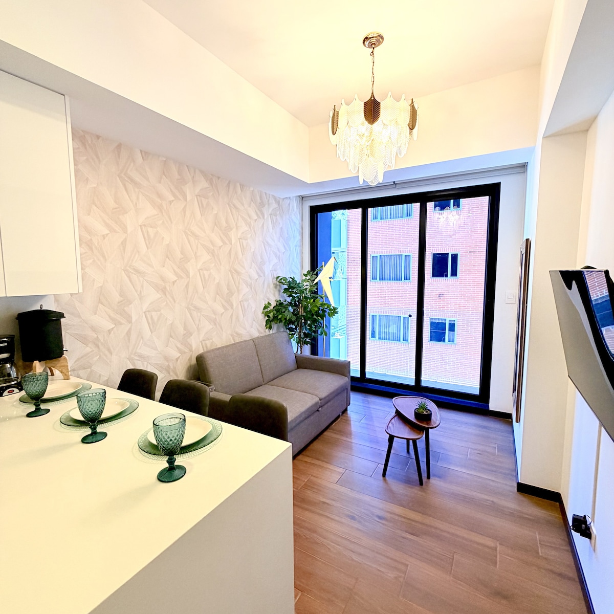 Este apartamento con estilo ecléctico en edificio Quo incluye una cama King, sala, cocina equipada, baño completo, desayunador, balcón, sábanas, toallas, TV, Alexa en áreas comunes y parqueo. Entre las amenidades el edifico cuenta con comercio en el primer nivel, entre ellos varios restaurantes y supermercado, área de recreación, zonas para comer al aire libre, juegos para niños. Todo en un solo lugar.