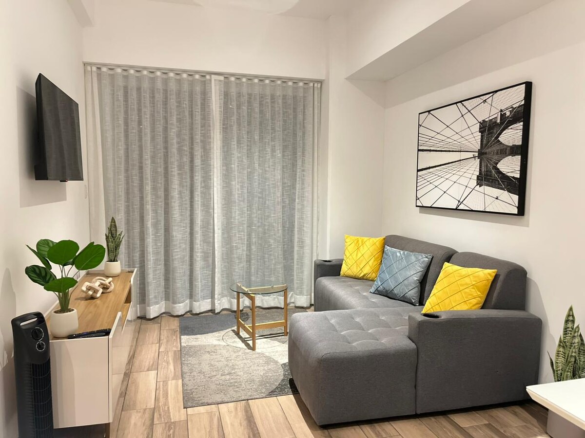 ★NO AIRBNB SERVICE FEE!!★ Exclusive benefit for CARAVANA guests Feel the experience staying in Guatechula brand new apartment with a turmeric color design, pairing off with white walls bringing together tranquility and calm. You will have the opportunity to stay near shopping centers, restaurants and hotel area in less than 10-minute walk. Guatechula apartment has common amenities like gym and a common workspace to use.